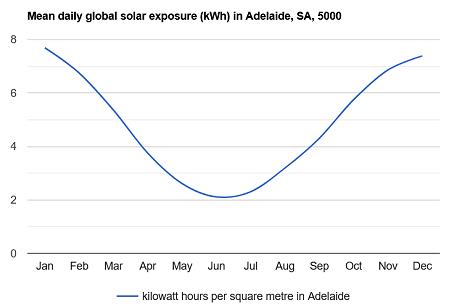 The site in question is part of a 1000 m2 house block in the northern suburbs of Adelaide, South Australia. Adelaide has a Mediterranean climate (Köppen climate classification Csa), with mild wet winters and hot dry summers. Adelaide experiences solar irradiation levels reaching approximately 4.83 kilowatt-hours per square metre per day on average over a year. However, if a solar system is to be considered, the winter readings must also be considered as there may not be enough solar energy to run the system during this season.