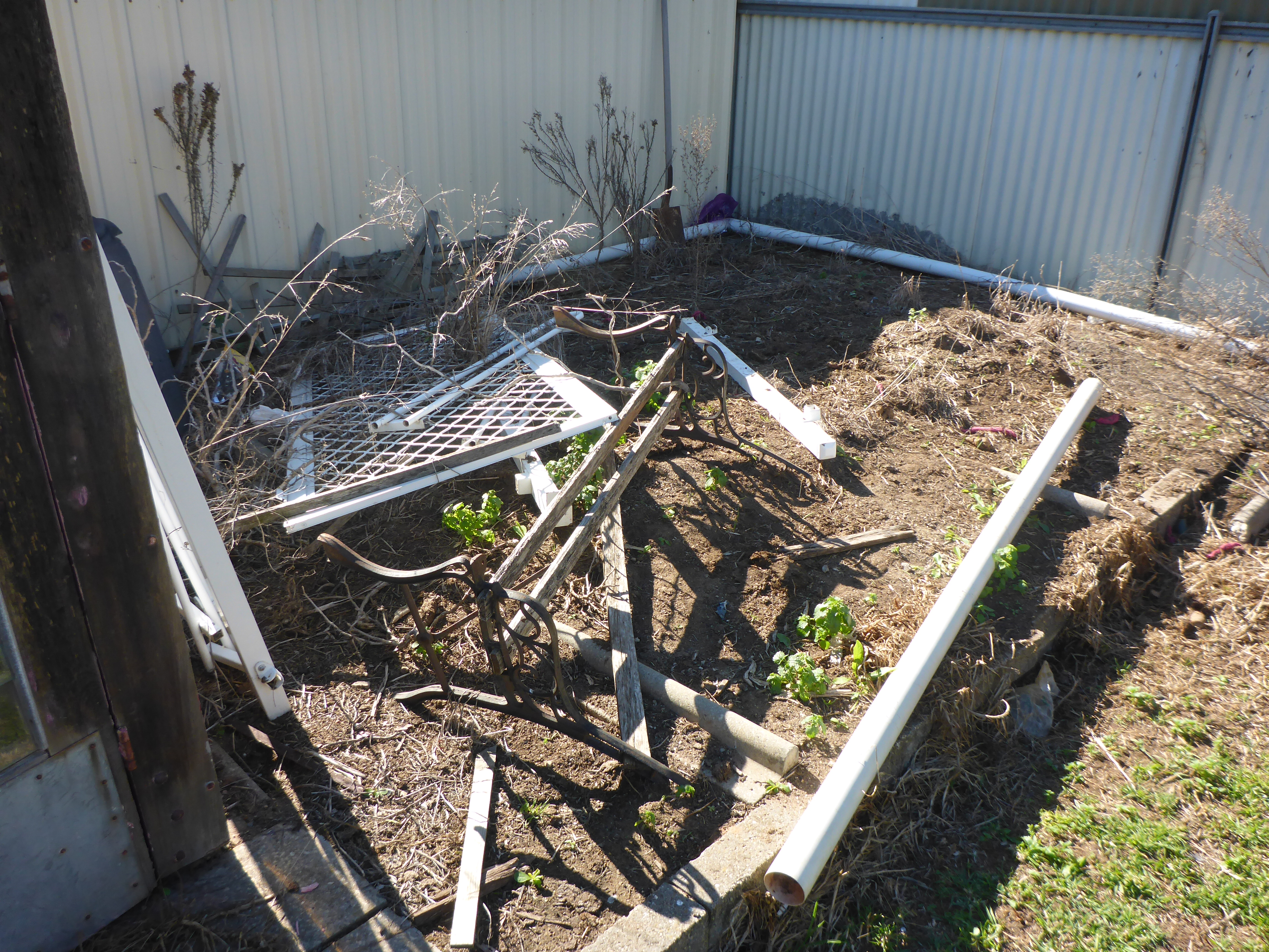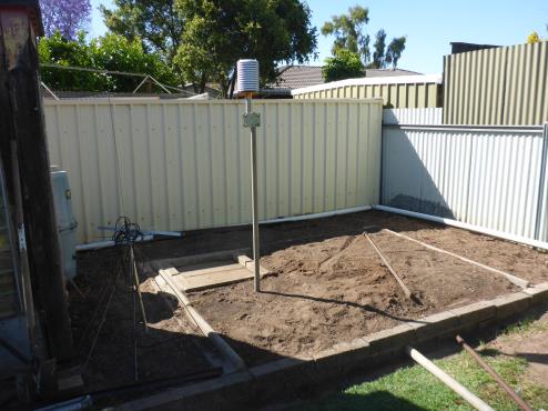 A cursory investigation of the illumination by the Sun in December indicates that the area in the top left of the picture is shaded in the morning by the trees in the cemetery on the other side of the rear fence and shaded by the metal fence and the tool shed in the afternoon. The advantage of this site is that the tool shed has power that can be easily supplied to that area if the solar power is not enough. There is also a straight run from the rain water tanks next to the house that could be used for an automated watering system, if desired.