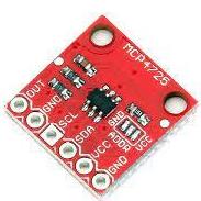 The MCP4725 is a low-power, high accuracy, single channel, 12-bit buffered voltage output Digital-to-Analog Convertor (DAC) with non-volatile memory (EEPROM). Its on-board precision output amplifier allows it to achieve rail-to-rail analog output swing. The DAC input and configuration data can be programmed to the non-volatile memory (EEPROM) by the user using I2C interface command.