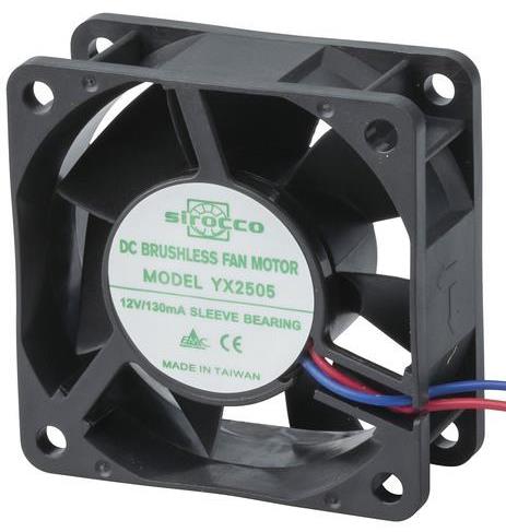 The top of the enclosure is also vented to help hot air escape from inside the enclosure, but again, it is unlikely that this will be sufficient to keep the electronics from overheating. A small available fan that could be attached to the case was tried, but the air flow was essentially insignificant for this purpose and the fan had a draw of 150mA from the 5V supply. One of the reasons that this fan had such poor air flow is that the area of the central hub holding the motor was much greater than the area available to the blades. The blades on a larger fan are larger proportionally since the central doesn't get larger at the same rate.
